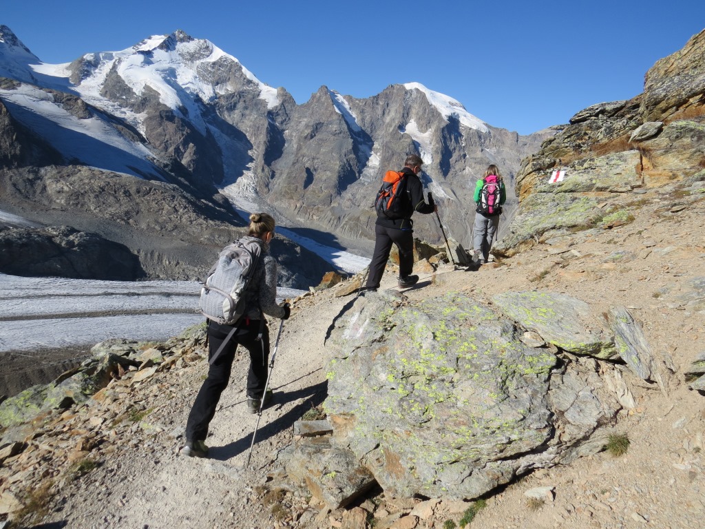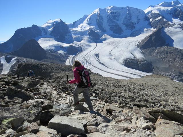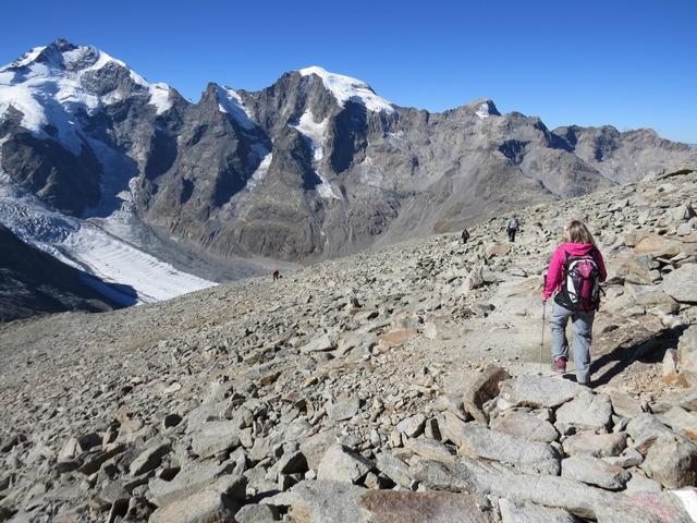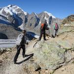 mit Blick auf Piz Cambrena, Piz Palü, Bellavista und Vadret Pers nehmen wir den Abstieg unter die Füsse Datum 12.02.2021