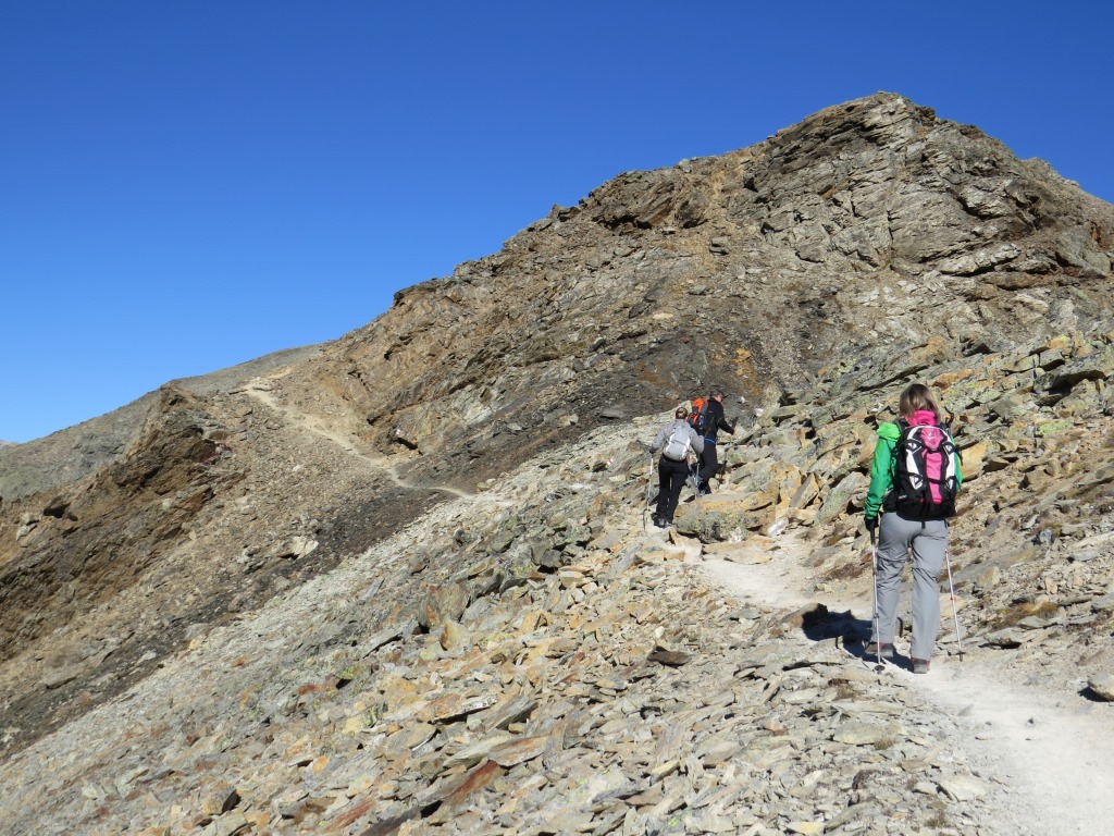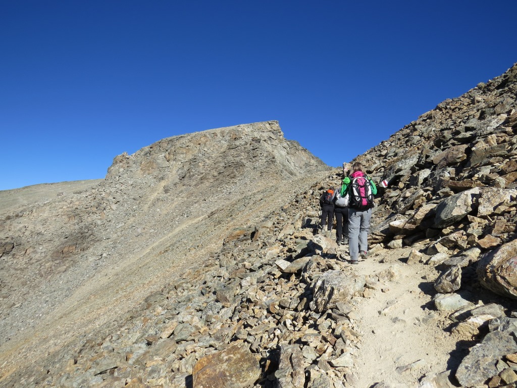 der erste Dreitausender ist der Munt Pers. Gut ersichtlich der Bergweg der zum Gipfel führt Datum 11.02.2021