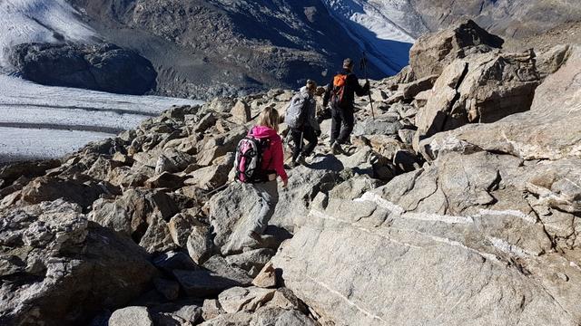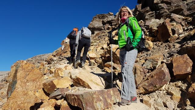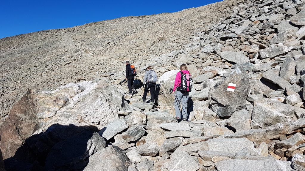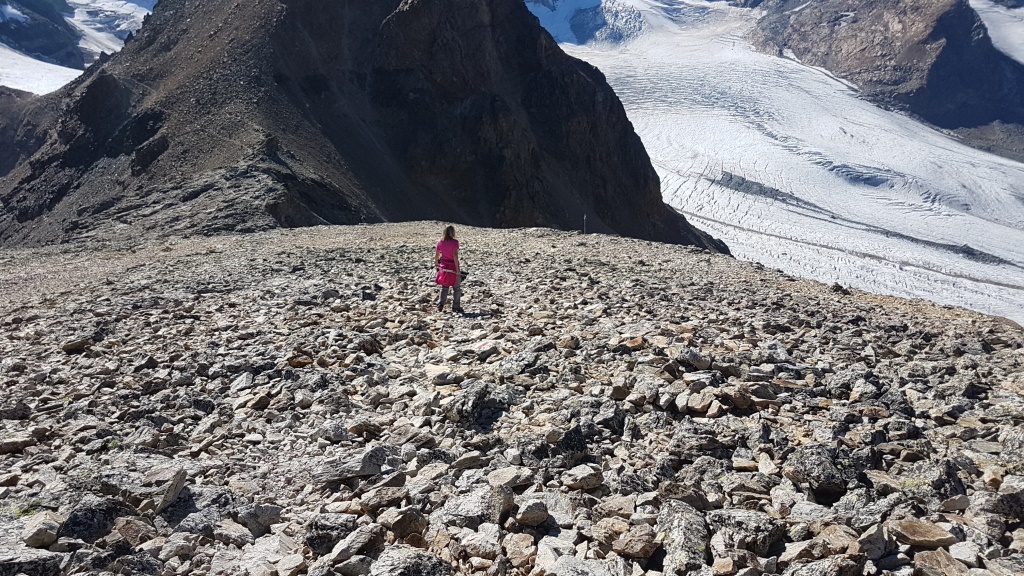 problemlos geht es dem Geröllhang hinunter Datum 13.02.2021