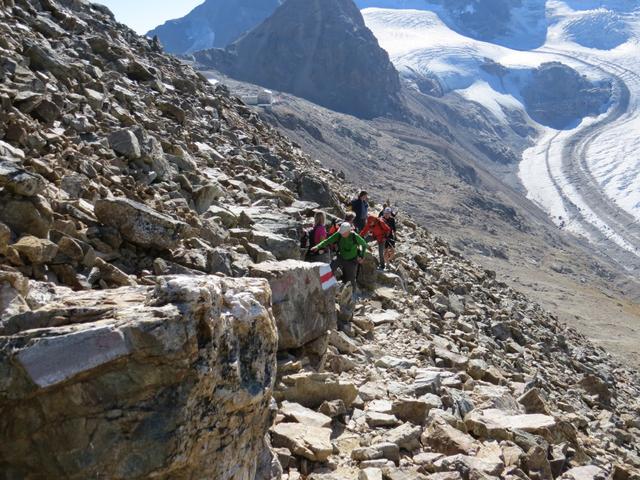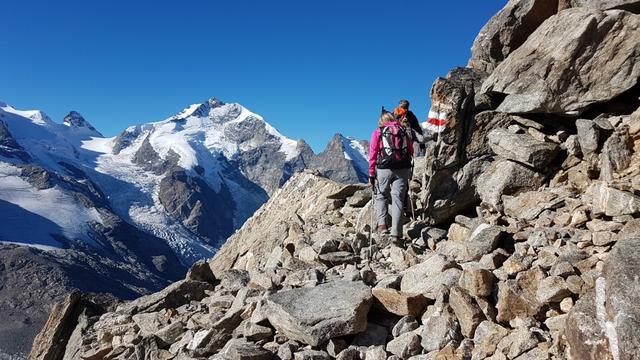 der Crast'Agüzza und Piz Bernina dürfen uns nicht allzu sehr ablenken, den hier ist Trittsicherheit erforderlich Datum 11.02.2021