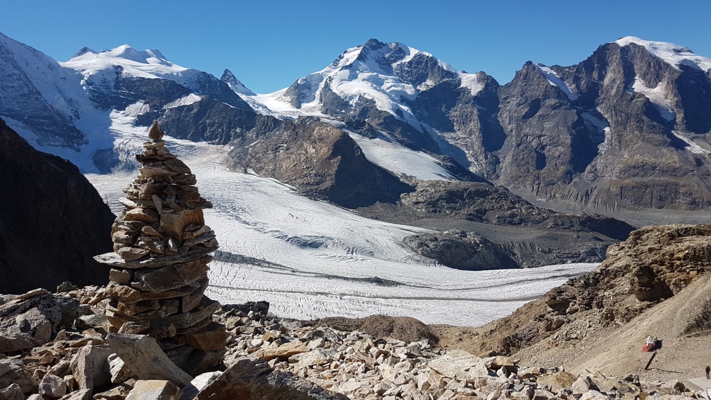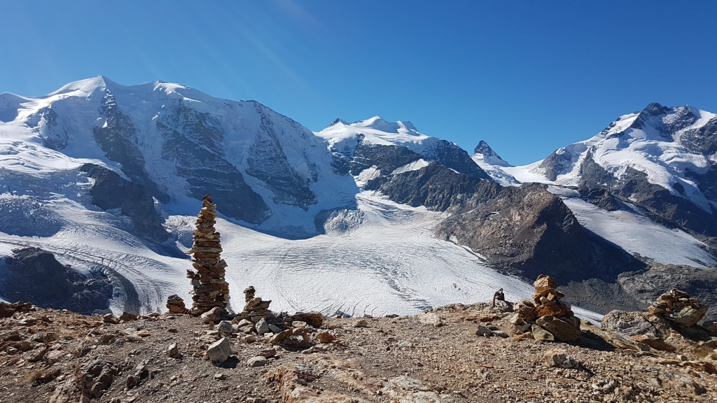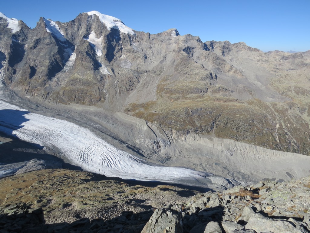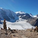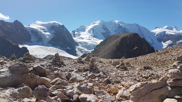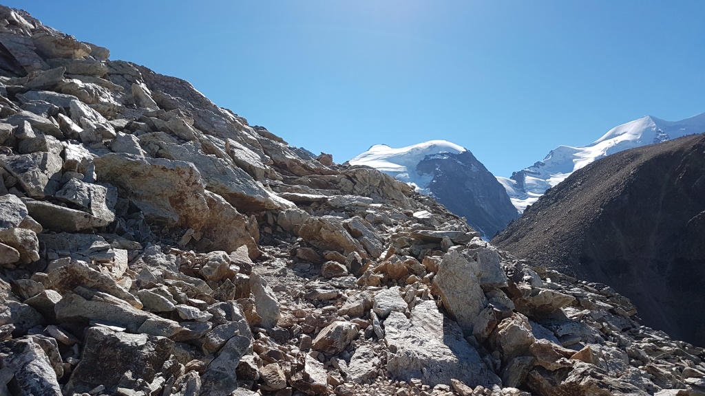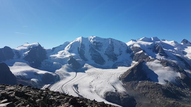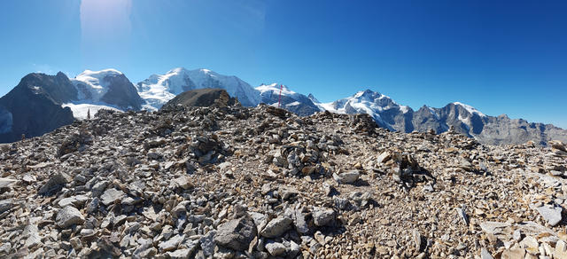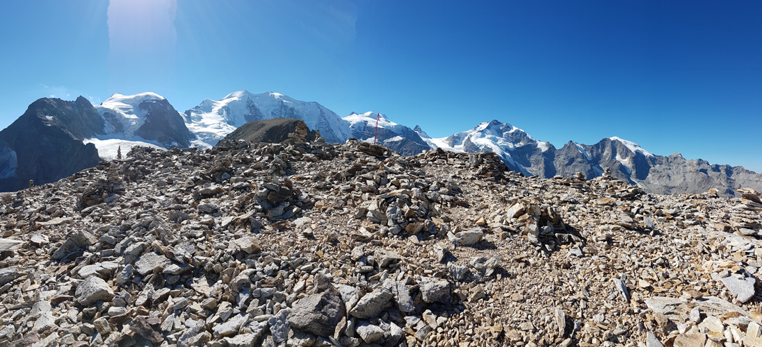 Piz Cambrena, Piz Palü-Ostgipfel und Piz Trovat und schauen zwischen dem Geröll hervor Datum 13.02.2021