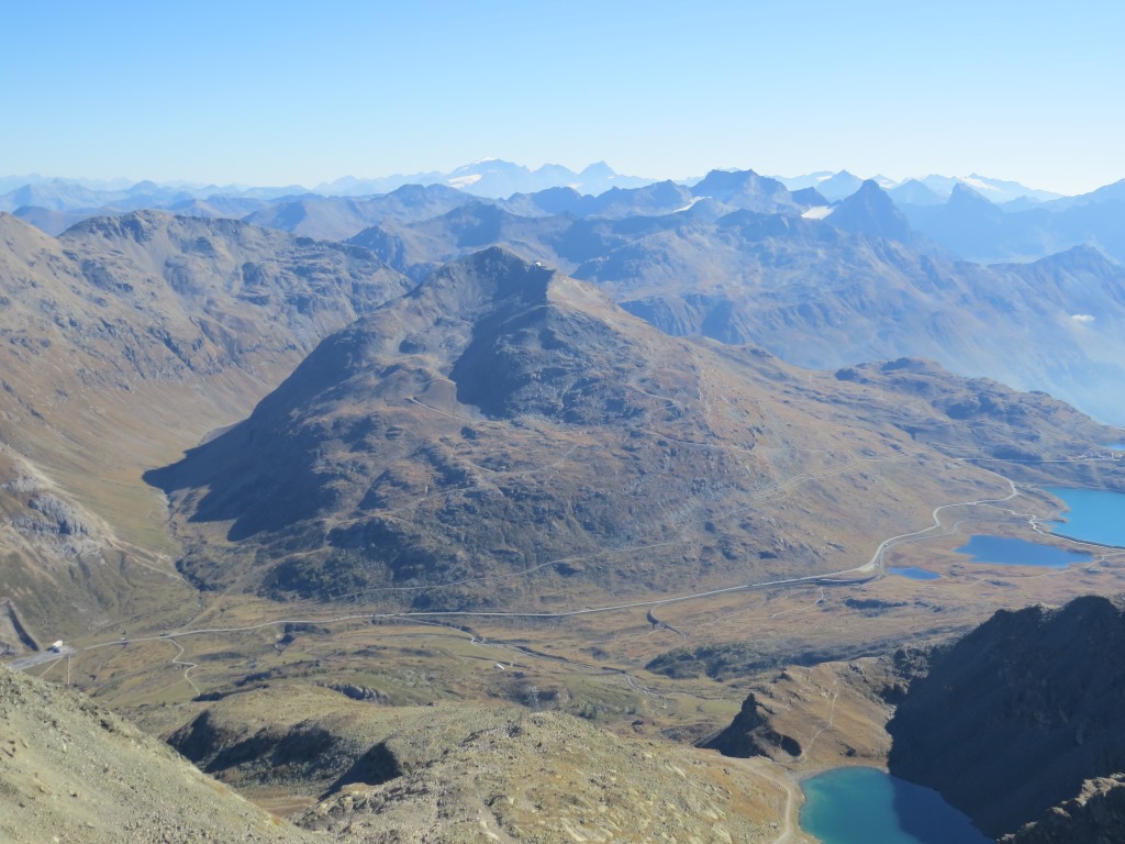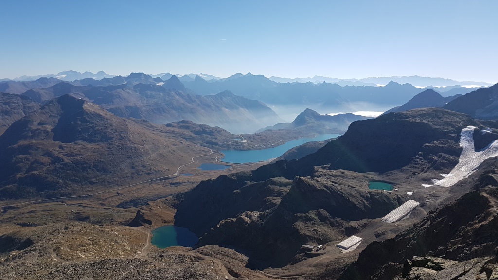 wir Blicken hinunter zum Lej da Diavolezza, Lej Nair und Lago Bianco beim Berninapass Datum 12.02.2021