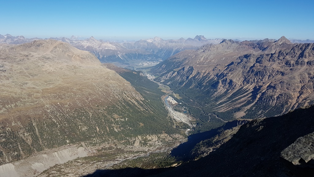 wir blicken ins Val Bernina Richtung Pontresina. Die Sicht sogar bis nach Samedan Datum 12.02.2021