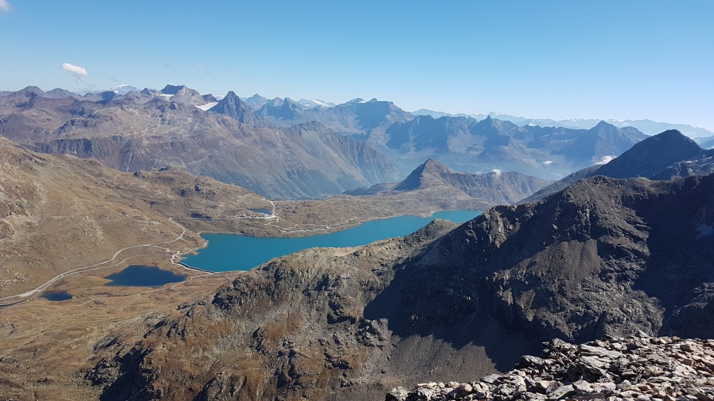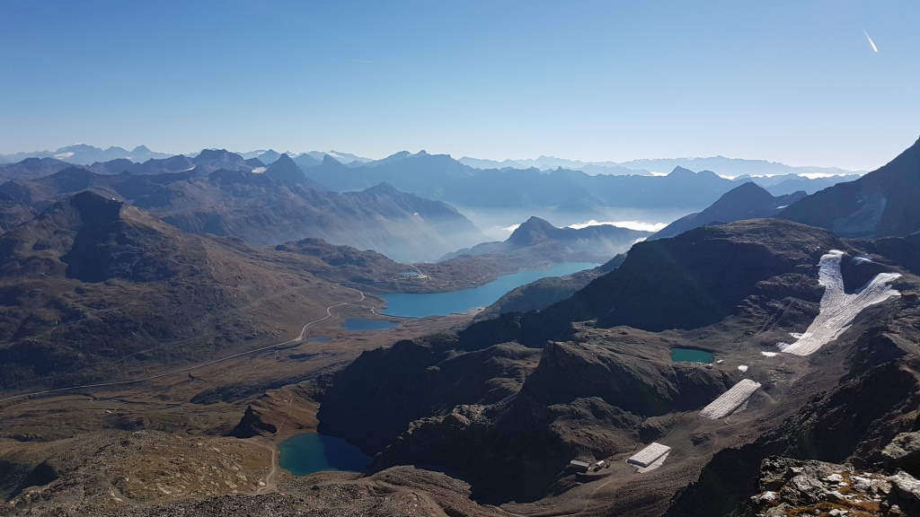 was für eine traumhafte Aussicht hier oben. Blick auf den Lago Bianco. Die Sicht reicht bis zum Ortler Datum 13.02.2021