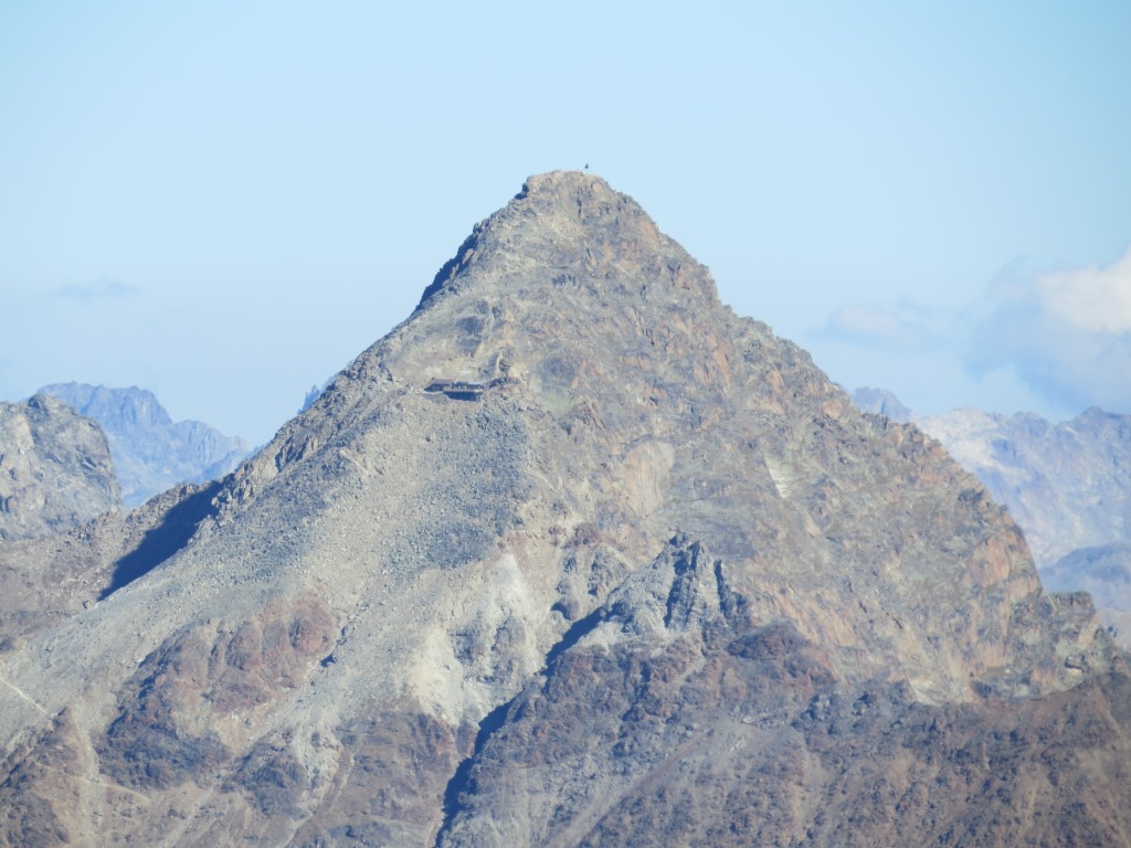 der Piz Languard mit der gut sichtbaren Chamanna Georgy. Auf diesem Gipfel standen wir auch schon Datum 12.02.2021