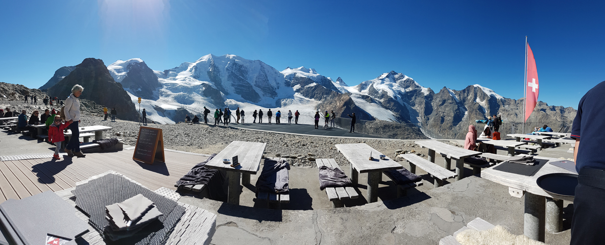 sehr schönes Breitbildfoto aufgenommen auf der Terrasse vom Bergrestaurant Diavolezza Datum 13.02.2021