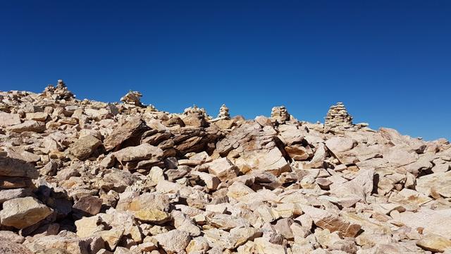 unzählige Steinmänner schmücken den Sass Queder Datum 13.02.2021