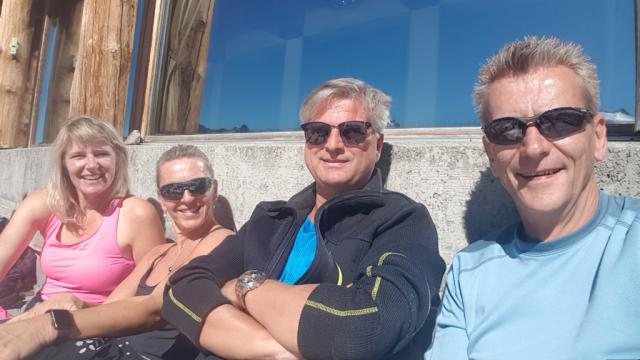 mit unseren Freunden geniessen wir danach beim Bergrestaurant die Aussicht und ein kühles Bier Datum 13.02.2021
