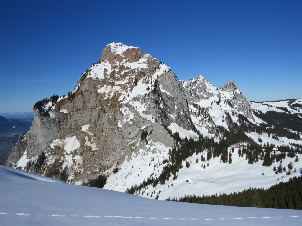 gut ersichtlich das Berghaus auf dem Gross Mythen