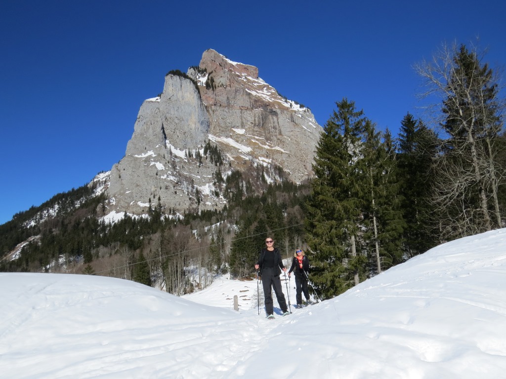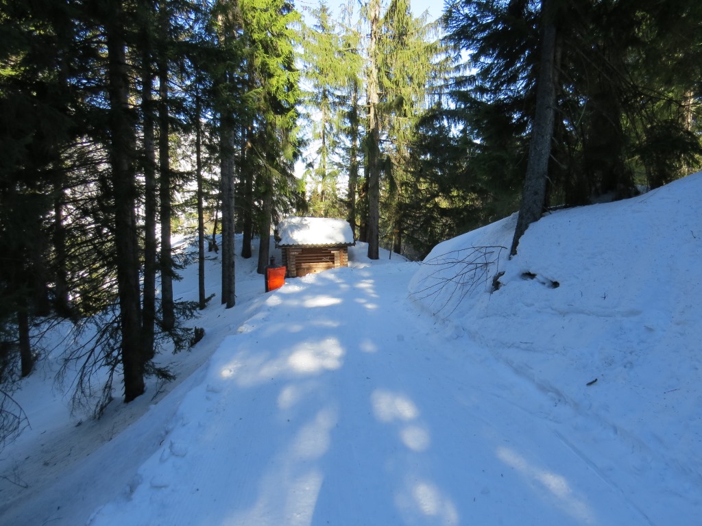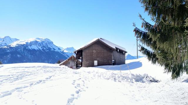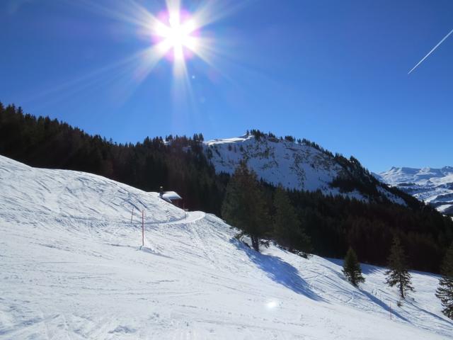 ...und kurz danach die Talstation der Rotenfluebahn. Eine aussichtsreiche Schneeschuhtour geht zu Ende