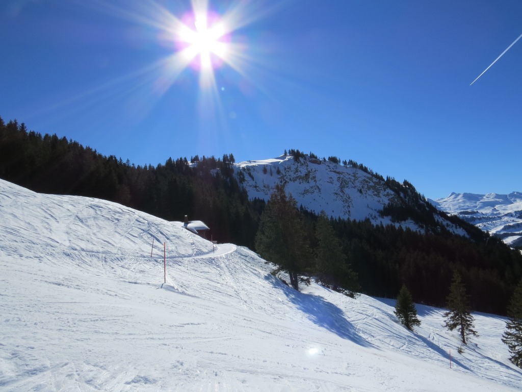 bequem schweben wir mit der neuen Gondelbahn hinauf zur Bergstation Rotenflue 1571 m.ü.M.