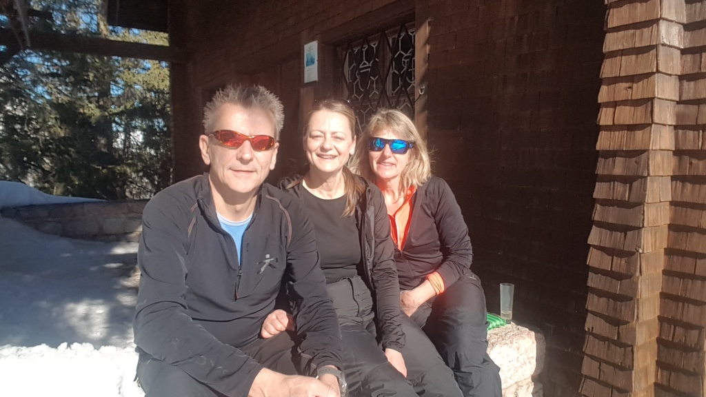 bei der Bergstation schnallen wir die Schneeschuhe an