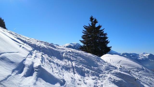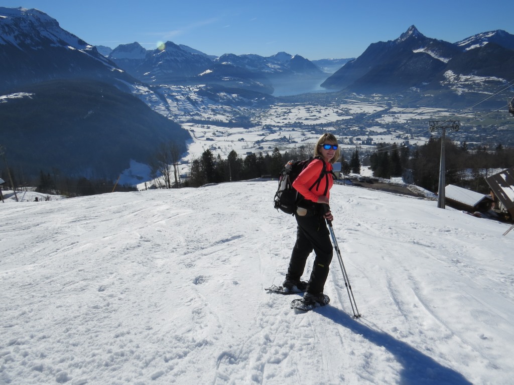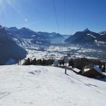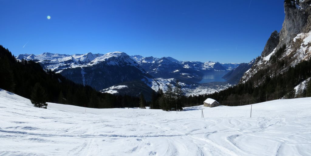 auf der anderen Talseite erkennen wir das Skigebiet Stoos-Fronalpstock