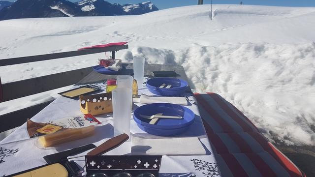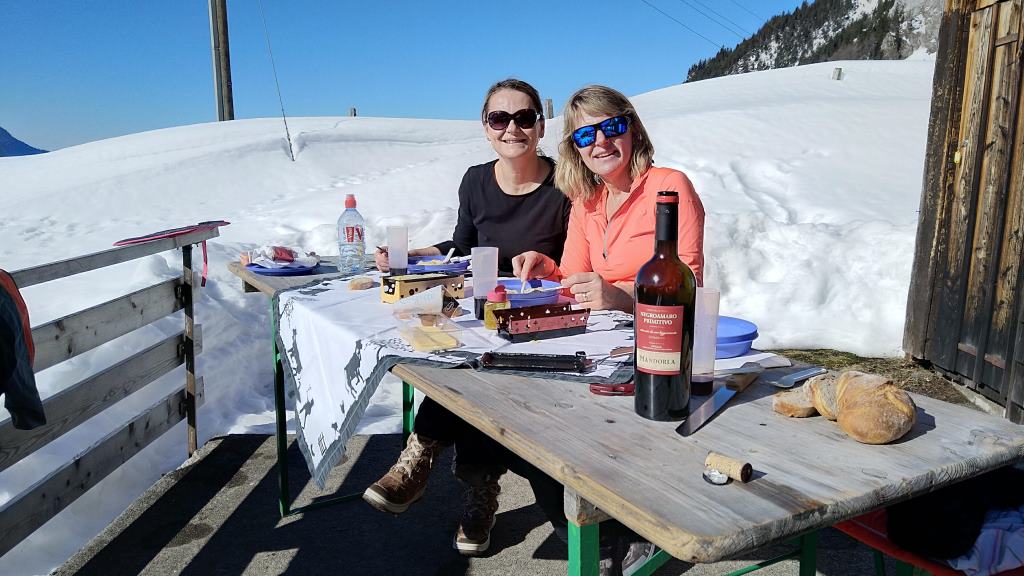 Daniela und meine Maus geniessen das mitgebrachte Raclette...