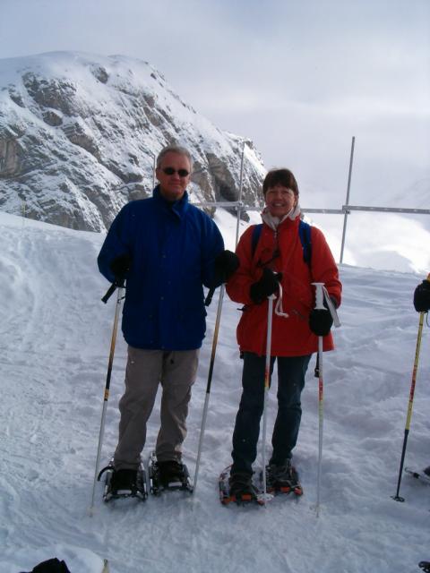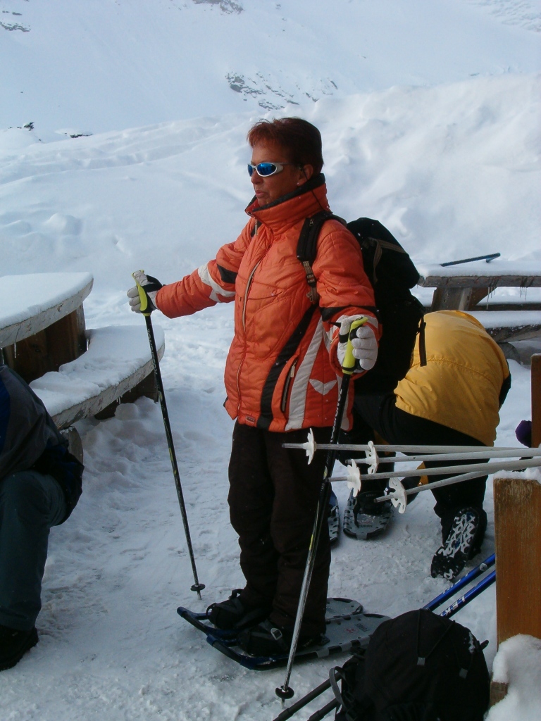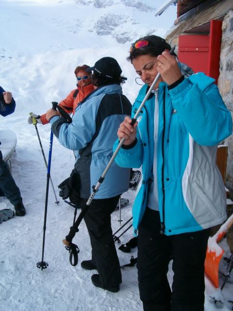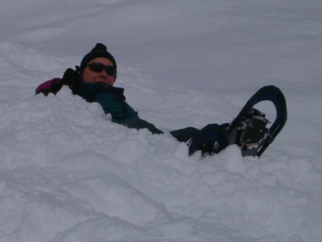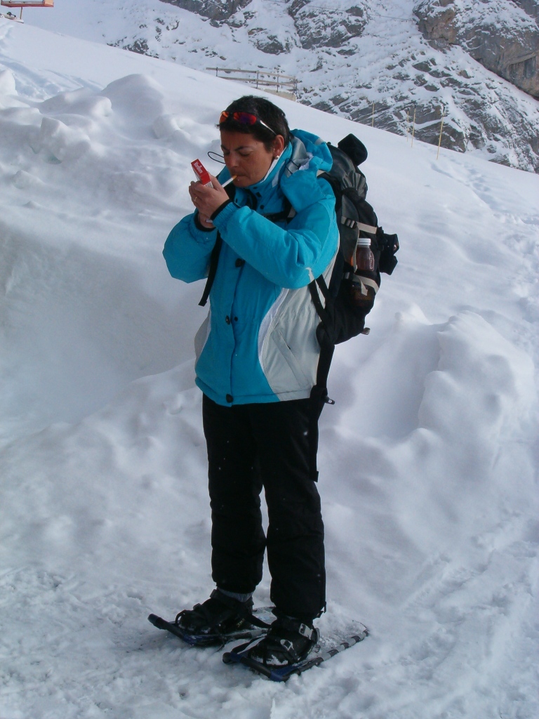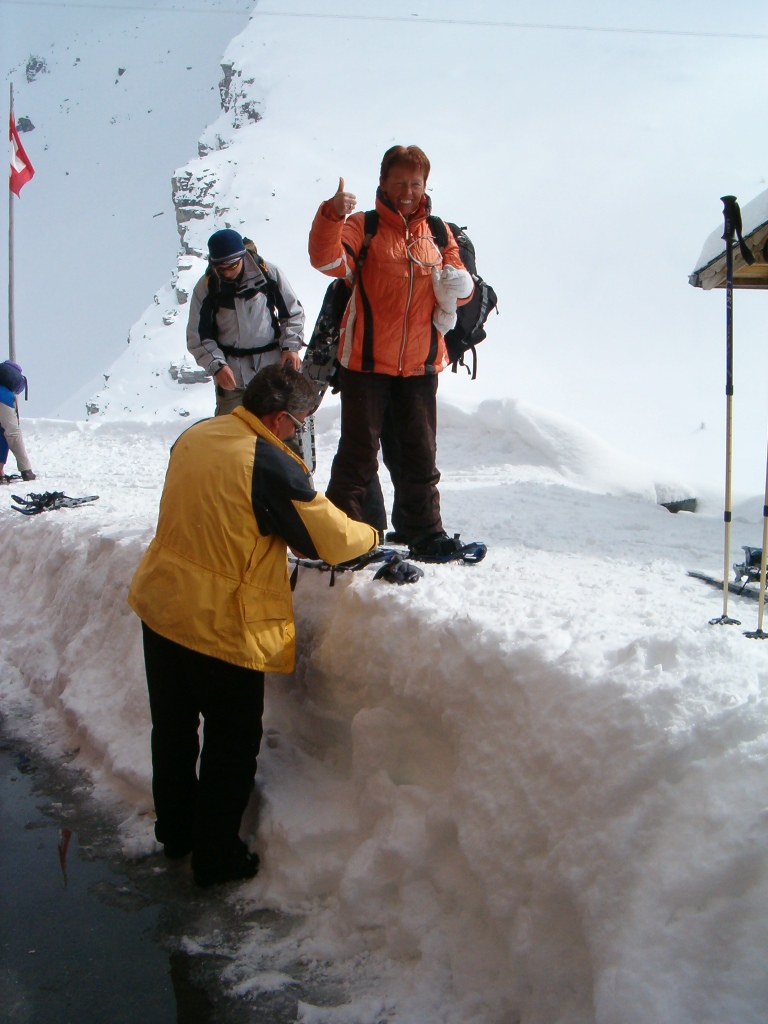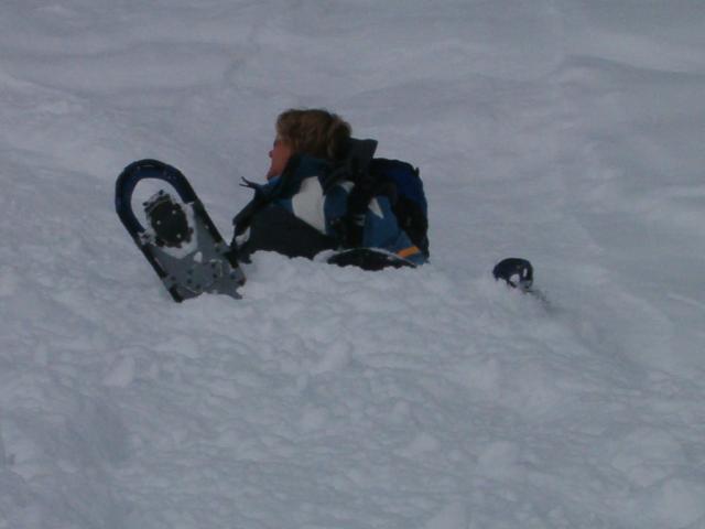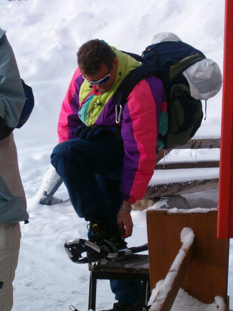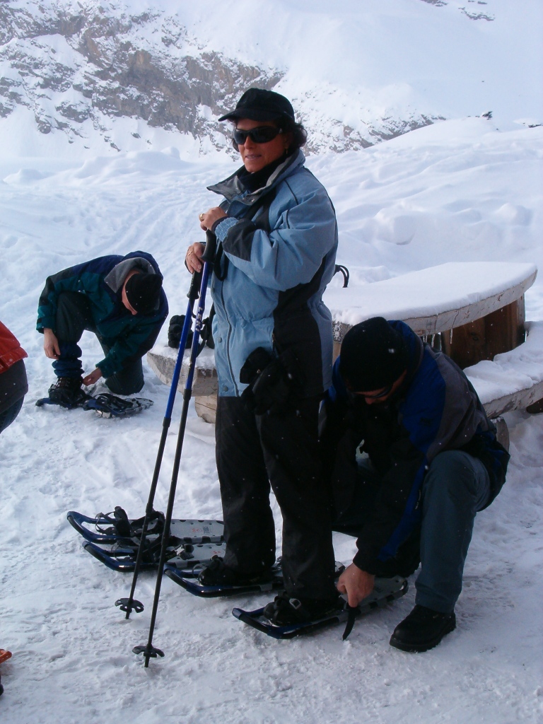 schwierig die festgefrorenen Schneeschuhen anzuziehen