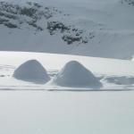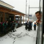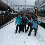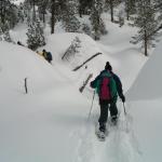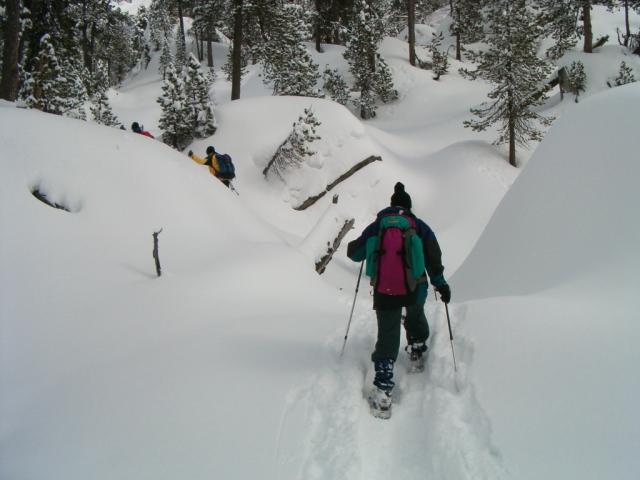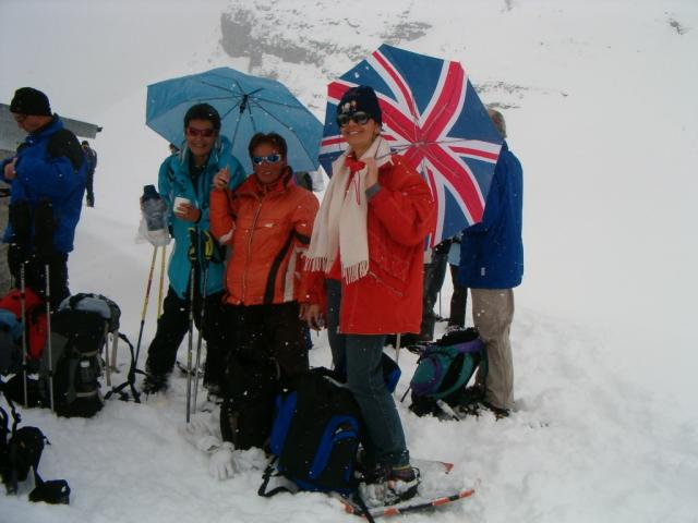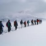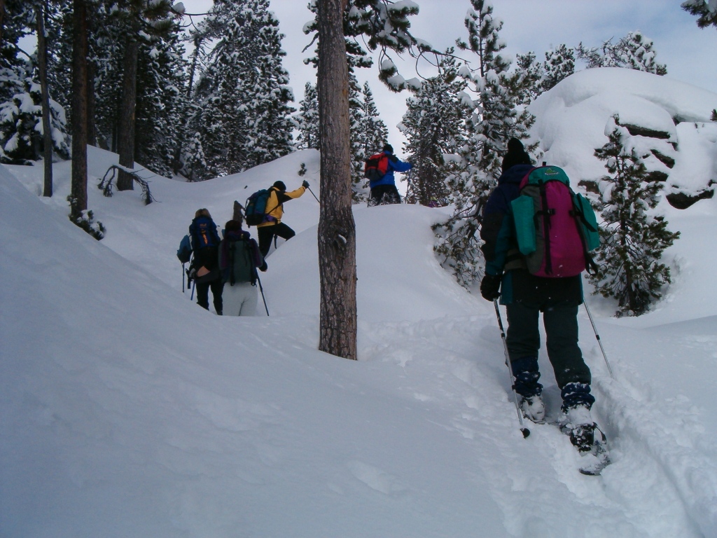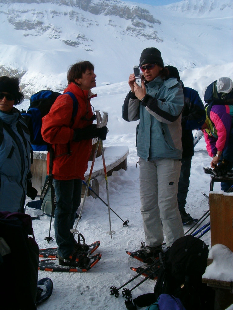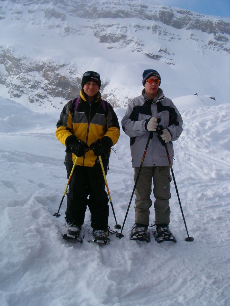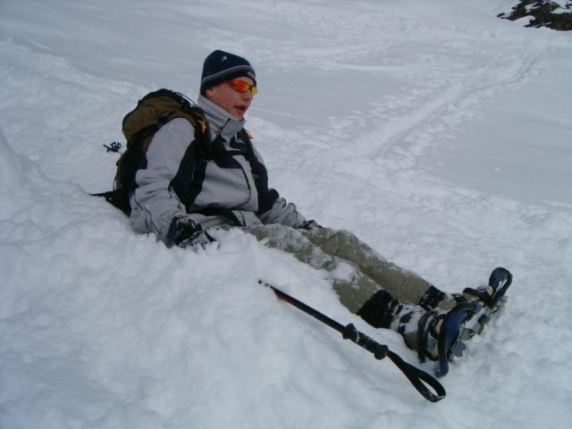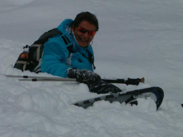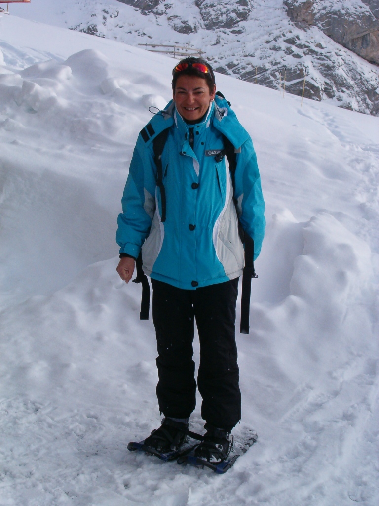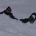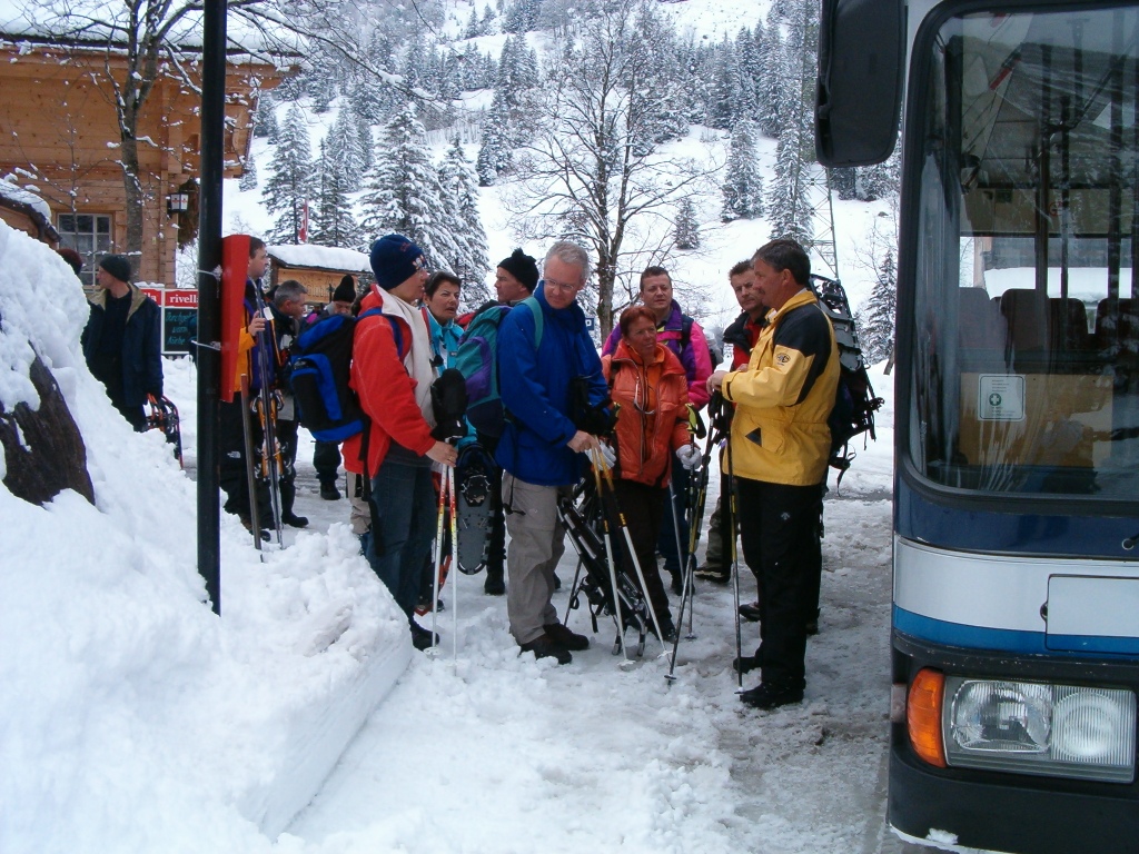 schwierig die festgefrorenen Schneeschuhen anzuziehen