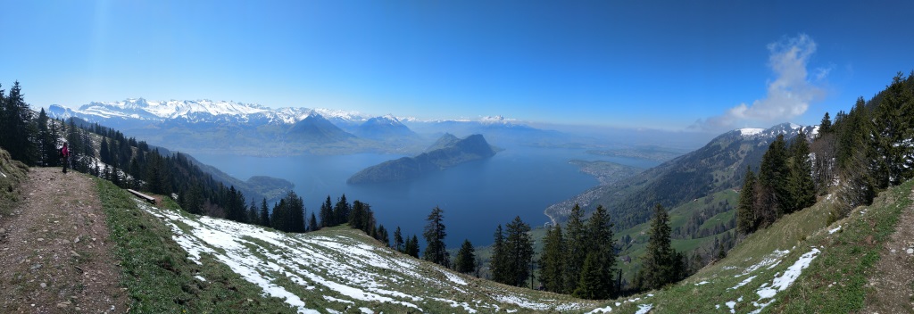 was für eine traumhafte Aussicht über den Vierwaldstättersee und in die Berge der Zentralschweiz Datum 29.04.2021