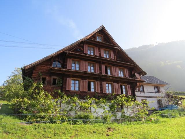 der Wanderweg biegt rechts ab und führt uns an schönen Häuser vorbei Datum 29.04.2021