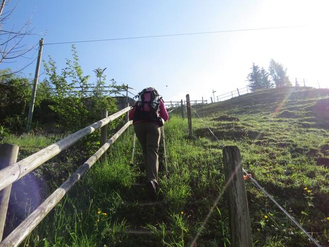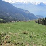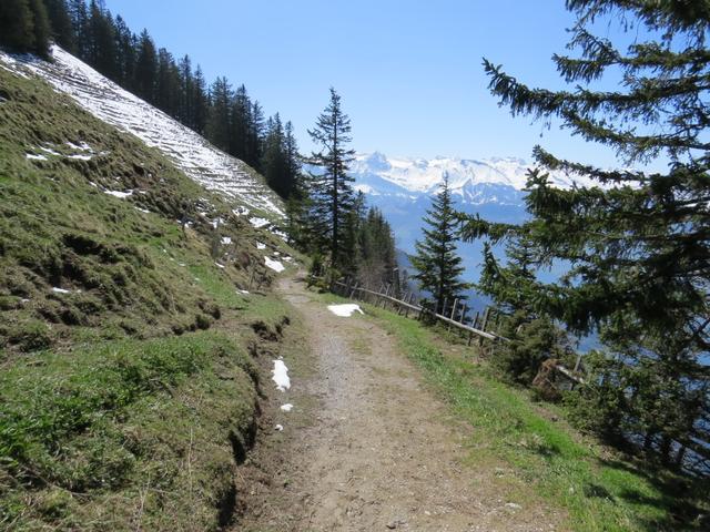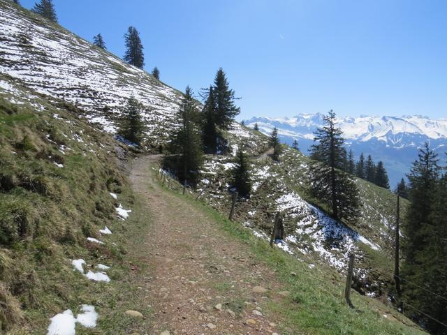 über Alpweiden führt uns der Wanderweg auf fast gleichbleibender Höhe Richtung Oberstafel Datum 01.05.2021