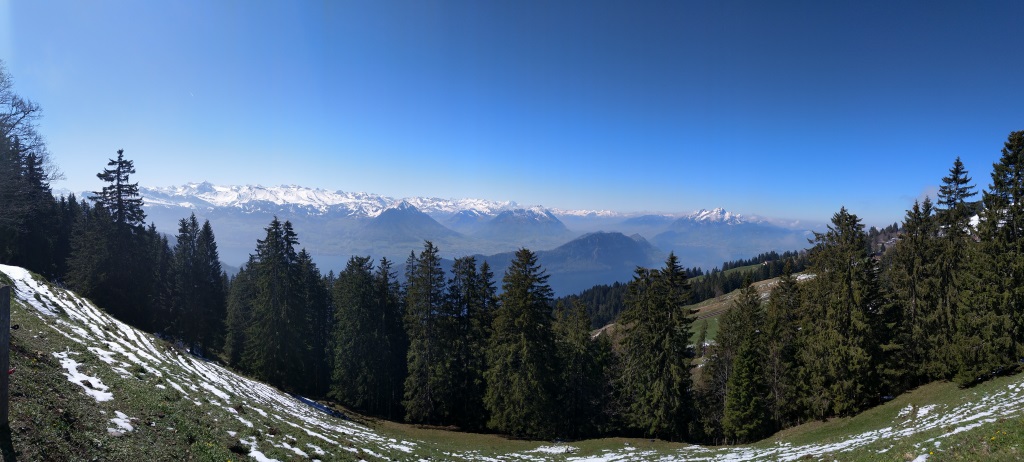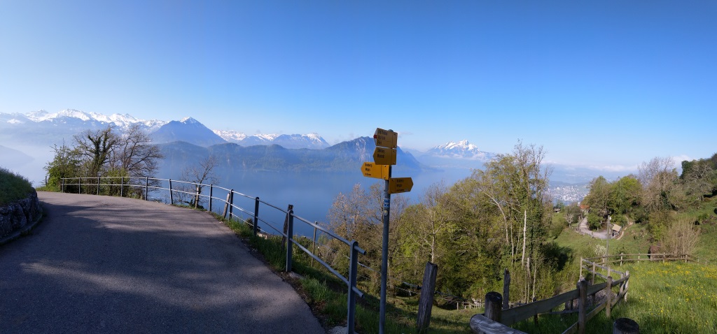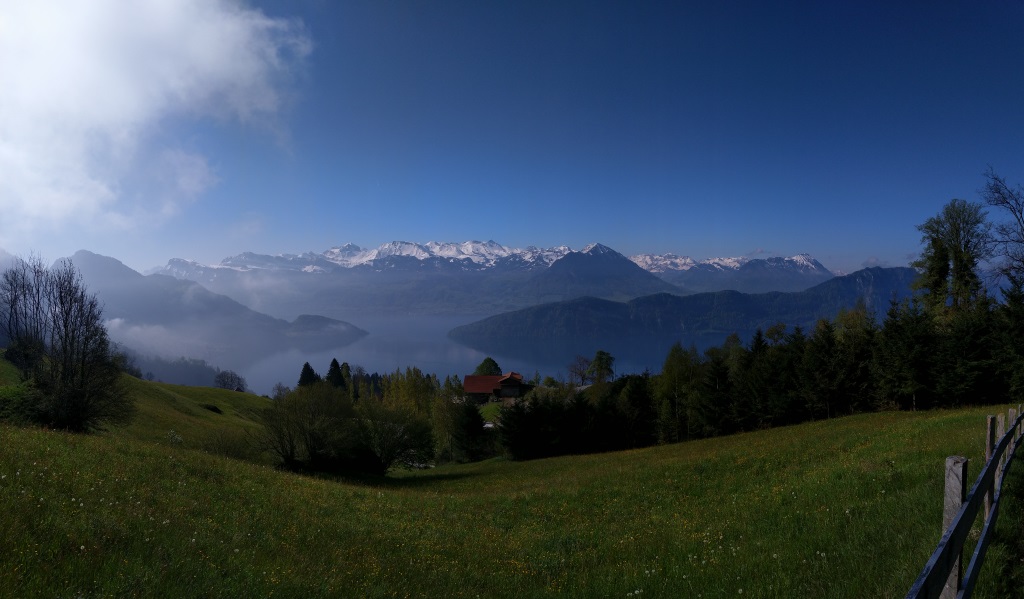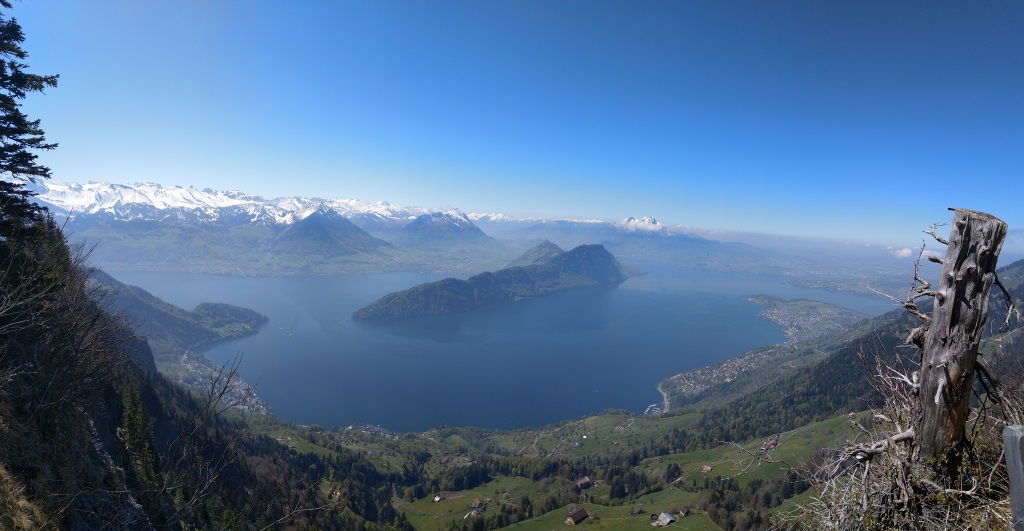 was für eine traumhafte Aussicht über den Vierwaldstättersee und in die Berge der Zentralschweiz Datum 29.04.2021