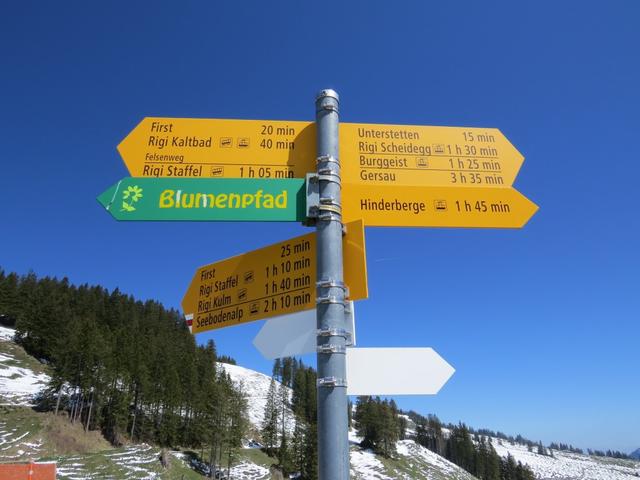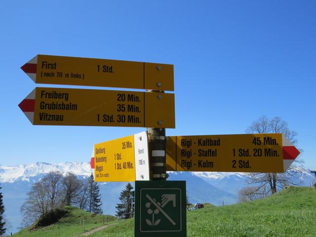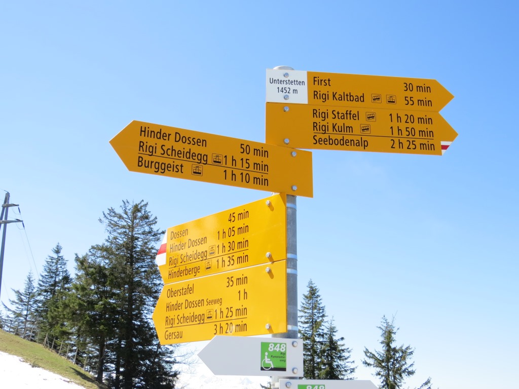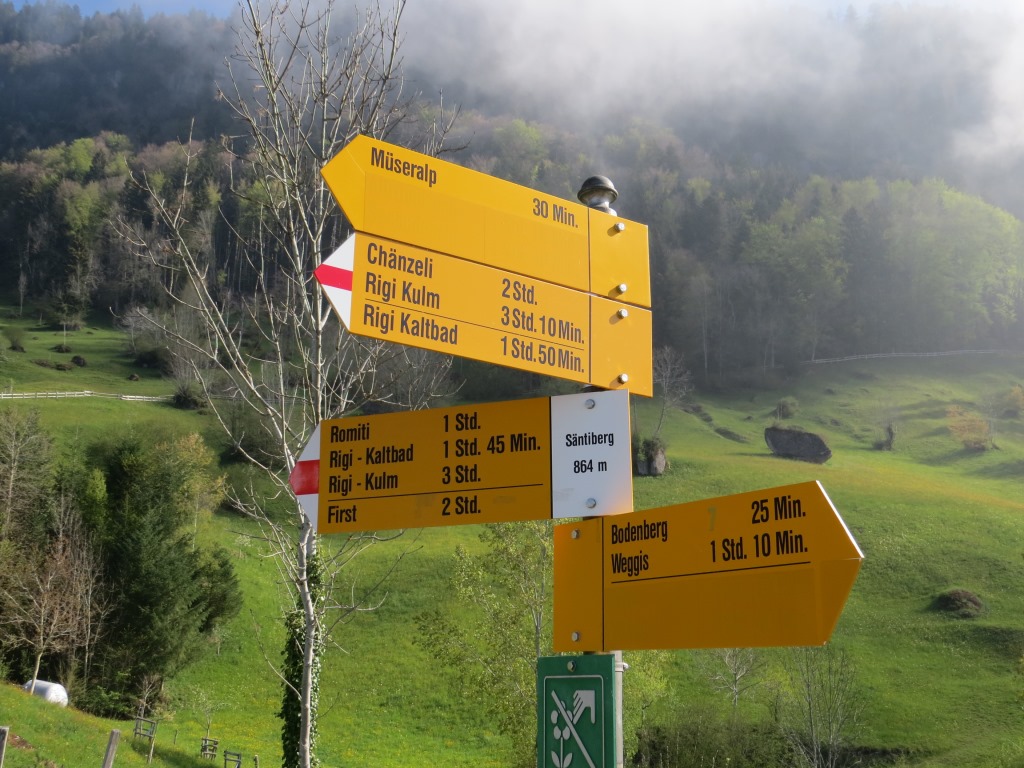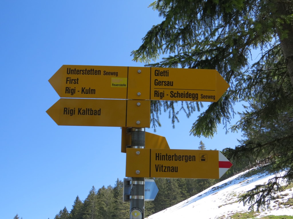 Wegweiser auf Rigi Kaltbad Datum 01.05.2021