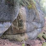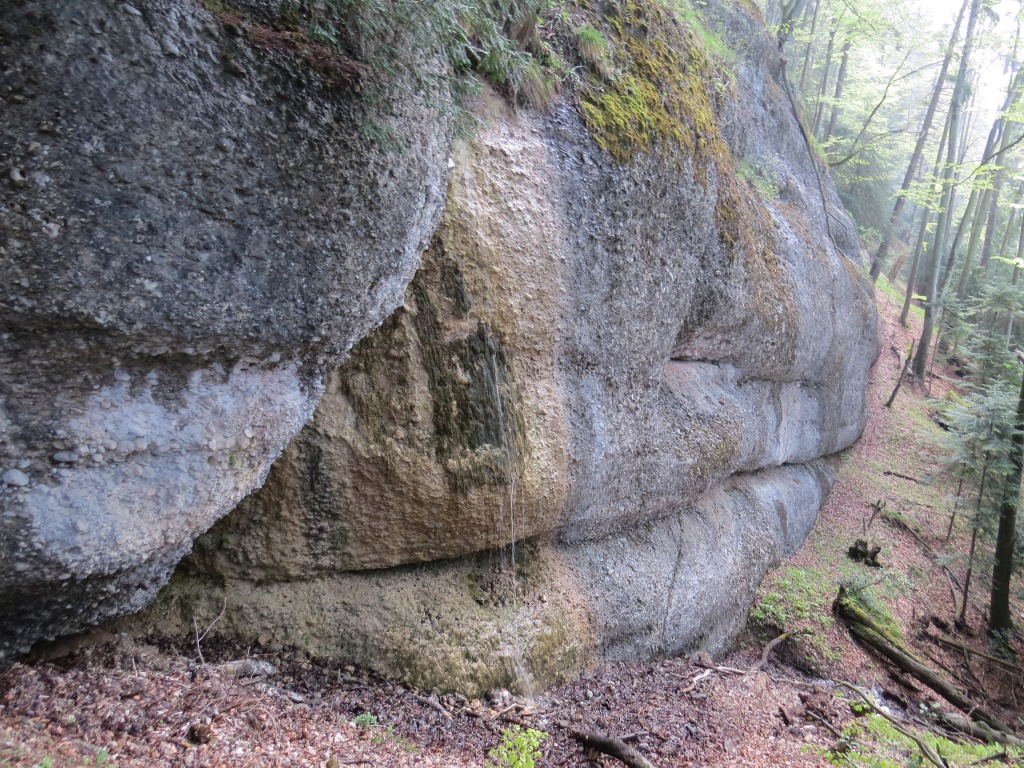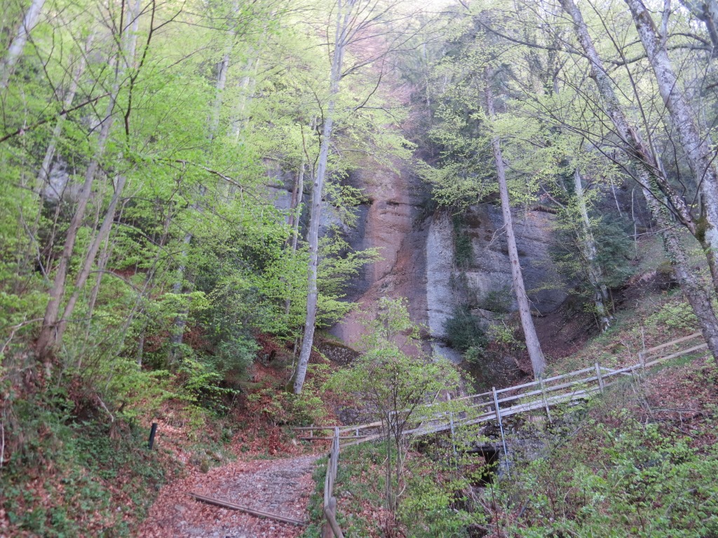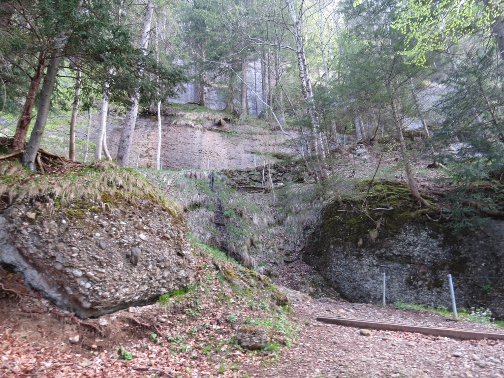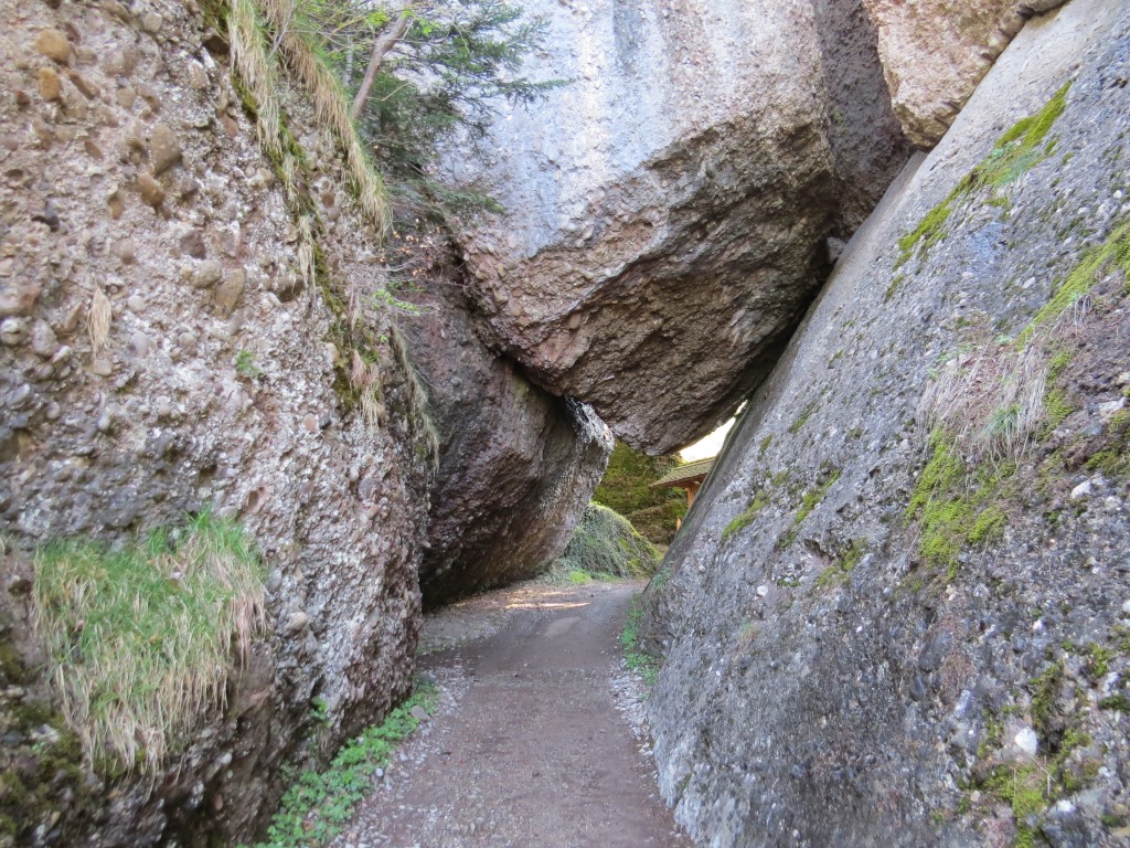 hier haben sich bei einem Felssturz drei riesige Nagelfluhbrocken ineinander verkeilt Datum 29.04.2021