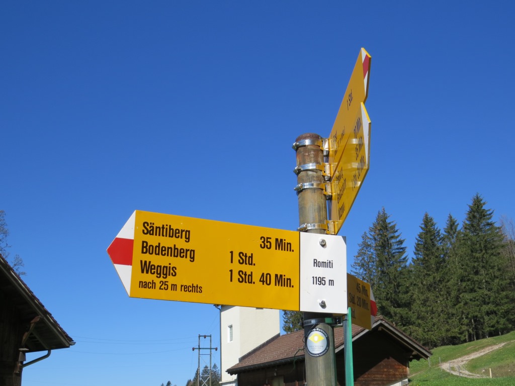Wegweiser bei Obersentiberg 864 m.ü.M. Datum 29.04.2021