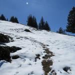 der Weg führt nun steil hinauf Richtung Dosse Datum 01.05.2021