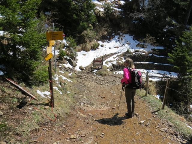 bei der grossen Wegkreuzung beim Restaurant Bärenstube 1453 m.ü.M. biegen wir rechts ab Datum 01.05.2021