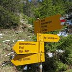Wegweiser bei der Bergstation der Luftseilbahn Datum 01.05.2021