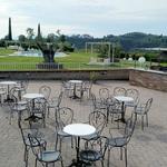 Blick vom anderem Fenster in die parkähnliche Anlage des Agriturismo