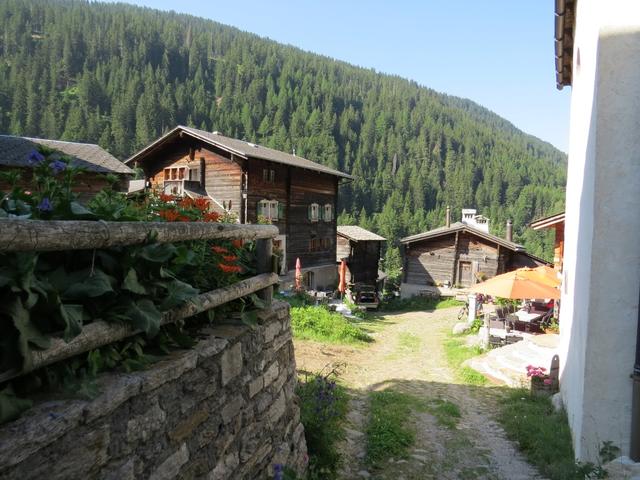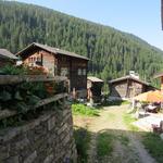 Fäld ist eine typische Siedlung der Walser mit braun gebrannten Holzhäusern