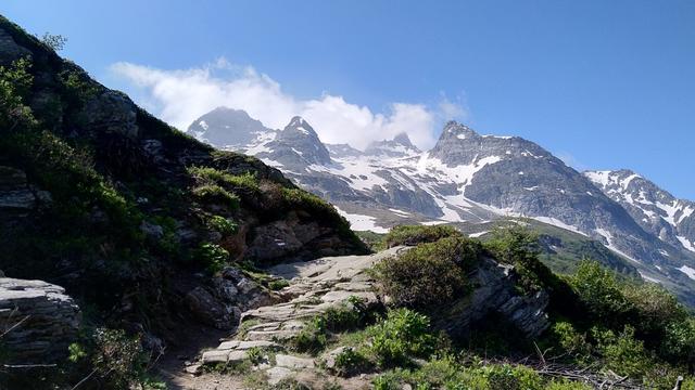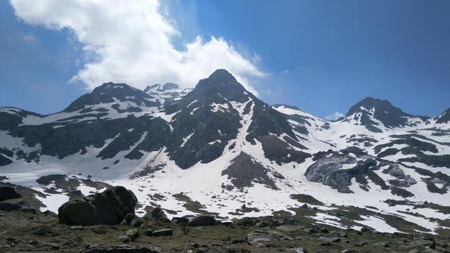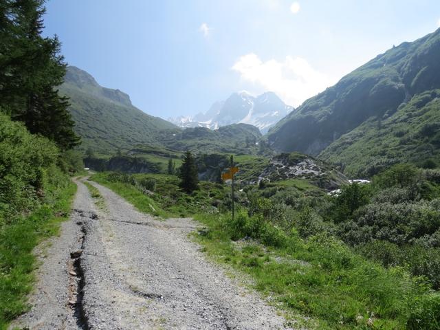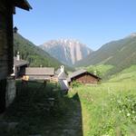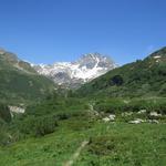 bei Chiestafel blicken wir talauswärts zum Breithorn und dahinter zum Bättlihorn