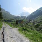 hier stossen wir auf die Alpstrasse die von der Mineraliengrube Lengenbach ins Tal führt