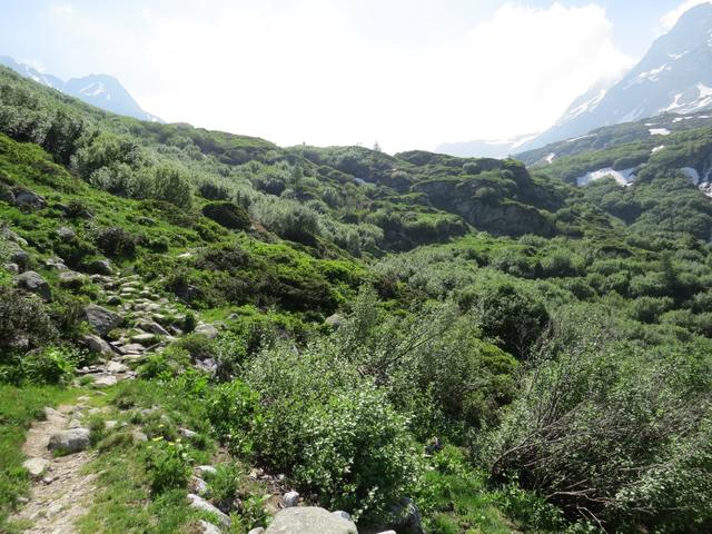 auf gleichem Weg wie wir gekommen sind, verlassen wir die Binntalhütte