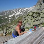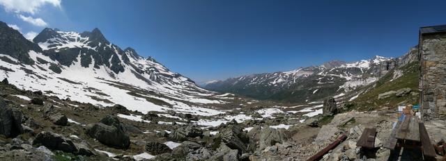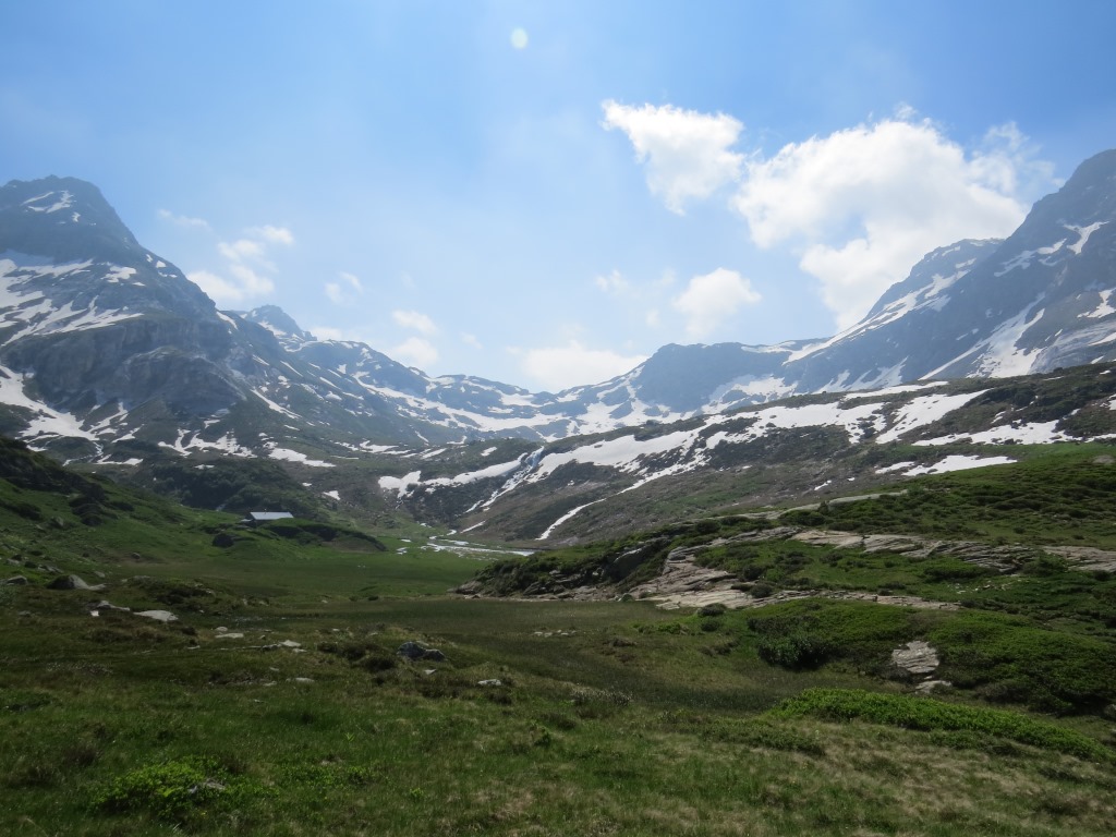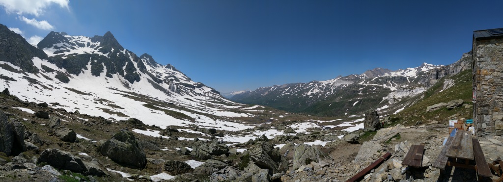 wir blicken zum letzten mal zurück zur Binntalhütte und zum Albrunpass