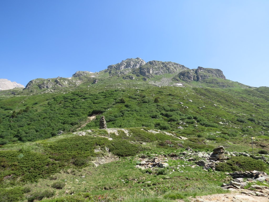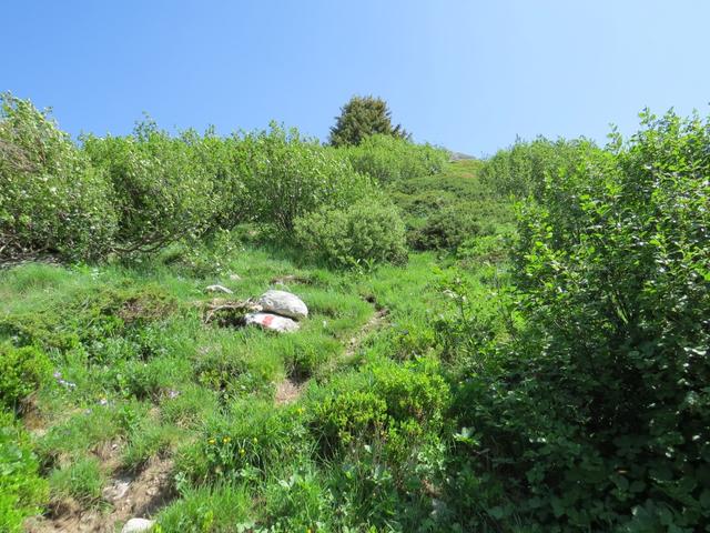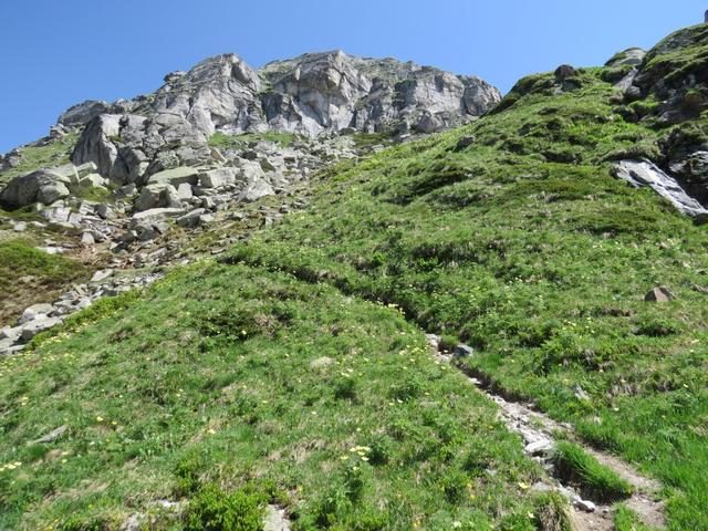 ...erreichen wir auf einem Bergweg den Felssporn bei der Alp Blatt 2104 m.ü.M...