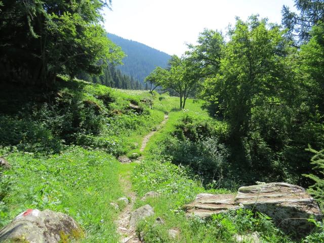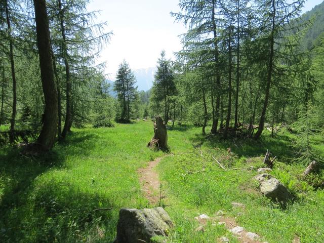 bei Heiwmeder 1672 m.ü.M. überqueren wir wieder die Strasse und durchqueren ein Lärchenwald