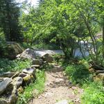 linkshaltend nehmen wir den Wanderweg unter die Füsse der sich zum malerischen Halsesee hinaufzieht