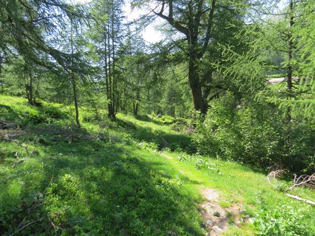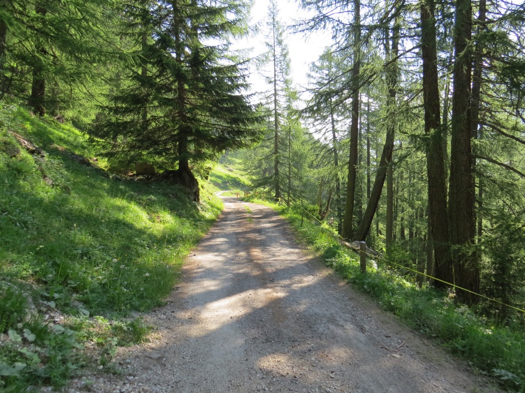 bei Heiwmeder 1672 m.ü.M. überqueren wir wieder die Strasse und durchqueren ein Lärchenwald Datum 11.05.2021