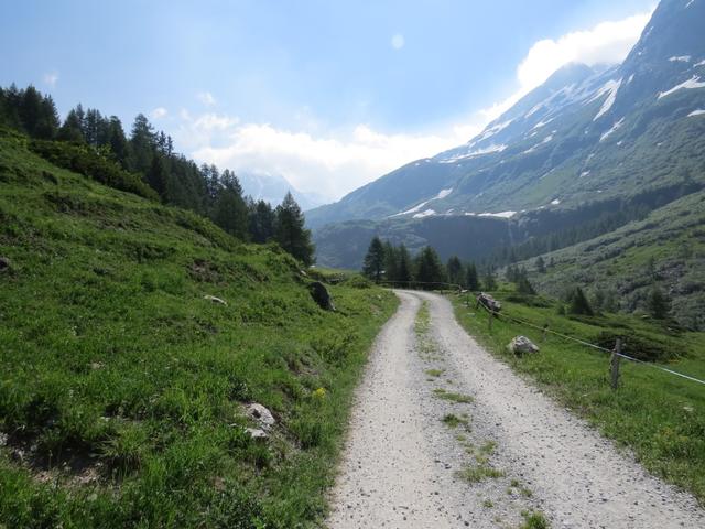 hier stossen wir auf die Alpstrasse die von der Mineraliengrube Lengenbach ins Tal führt Datum 13.05.2021