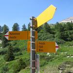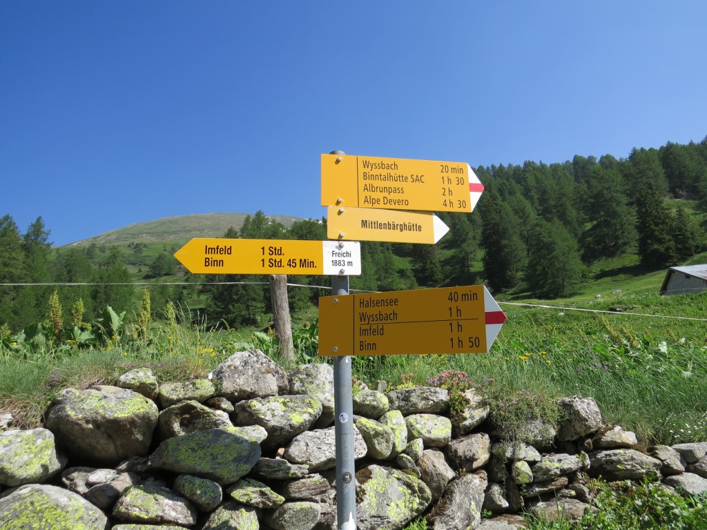 Wegweiser bei Freichi. Weiter geht es geradeaus Richtung Mittlenberghütte Datum 11.05.2021