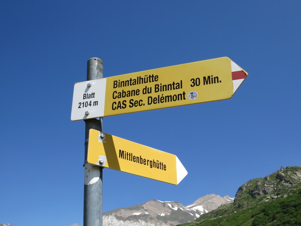 Wegweiser bei der Binntalhütte Datum 13.05.2021