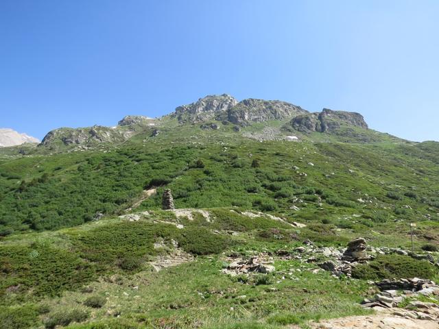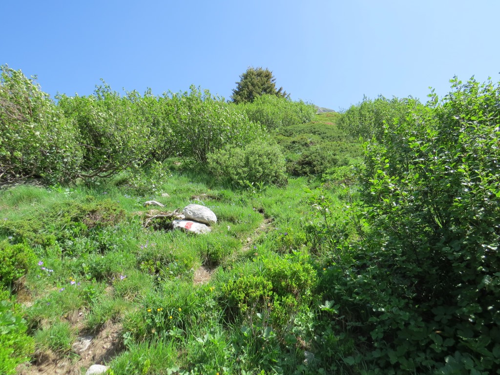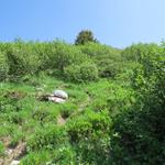 ...erreichen wir auf einem Bergweg den Felssporn bei der Alp Blatt 2104 m.ü.M... Datum 11.05.2021