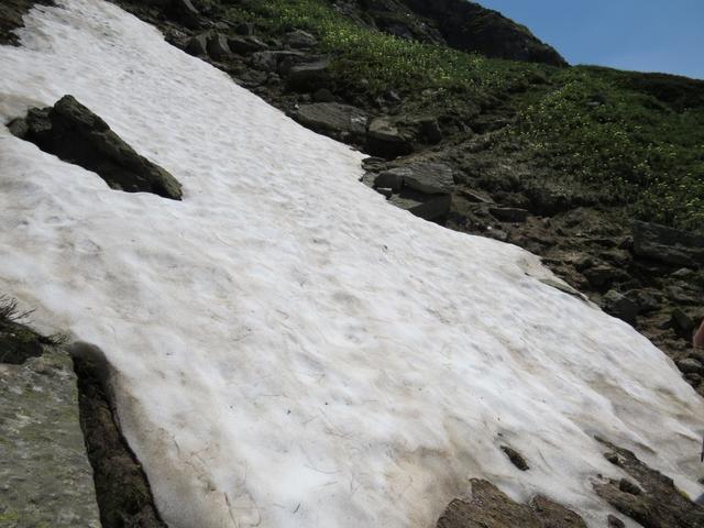 bei der Alp Oxefeld sind immer wieder Altschneefelder zu überqueren Datum 13.05.2021