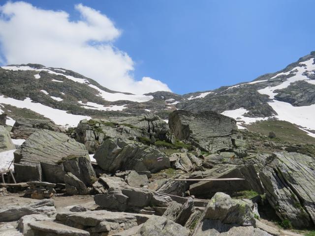 über eine abwechslungsreiche Landschaft erreichen wir die Binntalhütte 2267 m.ü.M. Datum 13.05.2021