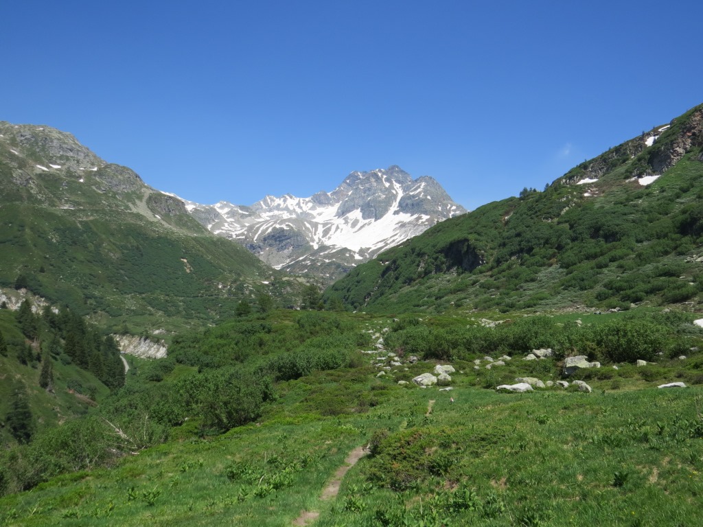 bei Chiestafel blicken wir talauswärts zum Breithorn und dahinter zum Bättlihorn Datum 13.05.2021