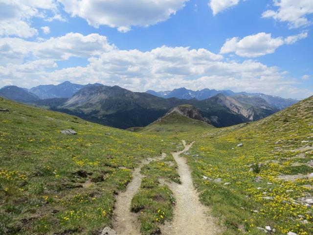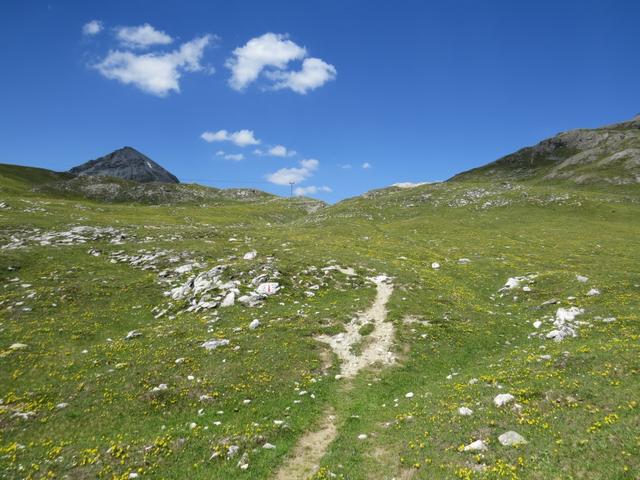 wir wandern weiter geradeaus, überqueren die Wiesen von Motta da Praditschöl... Datum 03.02.2023