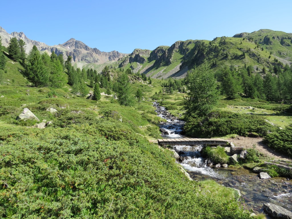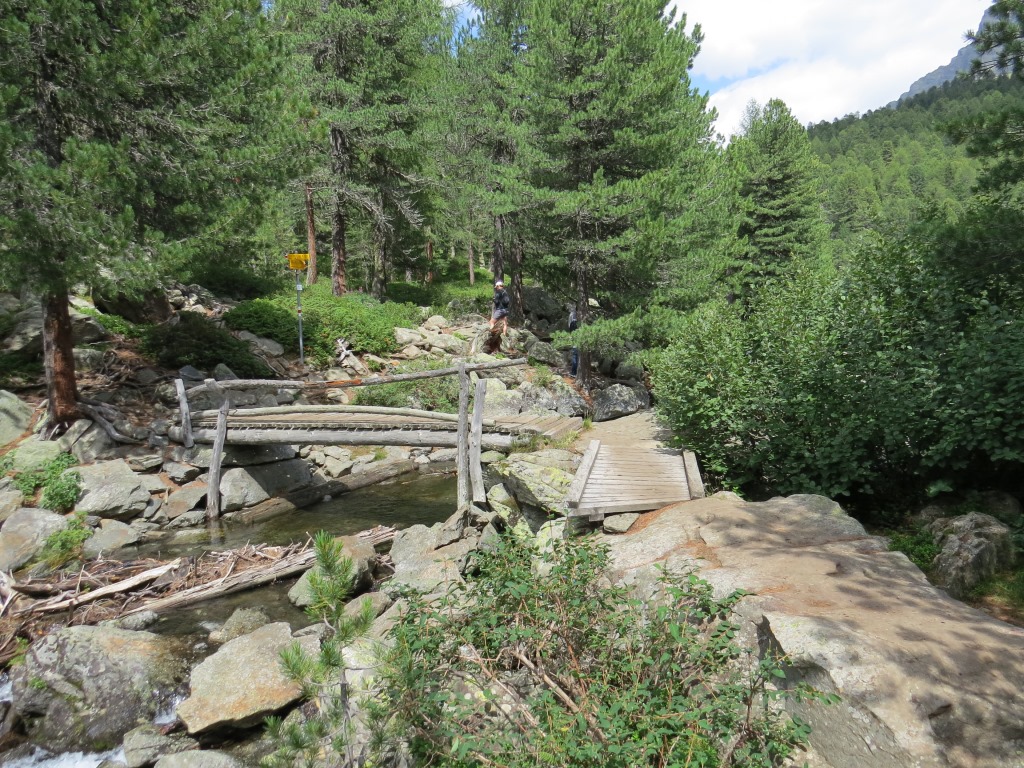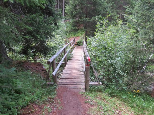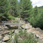 über eine Holzbrücke wird der Campobach überquert. Er wird uns bis zum Rifugio begleiten Datum 19.06.2023