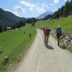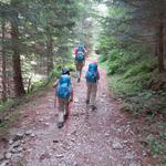 zusammen mit der Famile Erni und Fäsi, biegen wir in den breiten Wanderweg ein... Datum 04.08.2023
